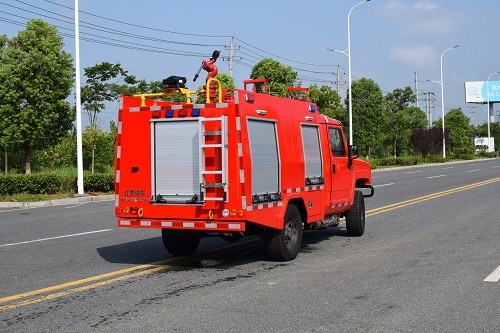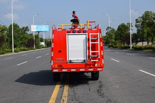 庆铃4吨水罐消防车采用五十铃QL1070A5KWY底盘改装而成。整车由消防员乘员室和车身两大部分组成,乘员室为原装双排,可乘坐2+3人,该车为内仓罐结构,车身前部为水罐+器材箱,后部为泵房。该车最大的特点是机动灵活、操控性好、维修简便。可广泛应用于公安消防队、厂矿企业及社区、码头等场所,扑救一般物质