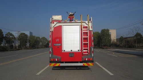 江特牌JDF5314GXFSG160/Z6型水罐消防车采用重汽豪沃ZZ5357TXFV464MF5底盘改装而成。整车由消防员乘员室和车身两大部分组成,乘员室为原装双排,可乘坐2+4人,该车为外露罐结构,车身前部为器材箱,中部为罐体,后部为泵房。载液罐体为优质碳钢,内部喷涂环氧底漆及环氧沥青漆,与底盘采用弹性连接,载水量16150kg,装备了上海茸申消防设备有限公司生产CB20·10/30·60-RS型中低压消防泵,额定流量60L/S,车顶安装成都斯特消防机械有限公司生产的PS8/60W型车用消防炮。该车最大的特点是载液量大、操控性好、维修简便。可广泛应用于公安消防队、厂矿企业及社区、码头等场所,扑救大型油类火灾和一般物质火灾。